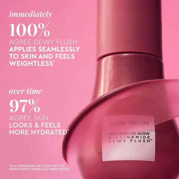 - 90% agree Dewy Flush leaves skin looking glowing + dewy.